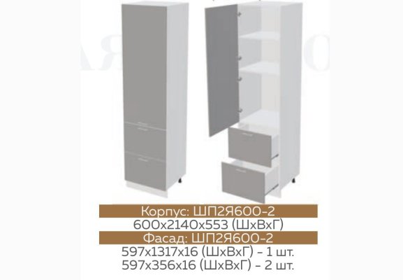 ШН2ЯГ600 Шкаф нижний с 2 глубокими ящиками